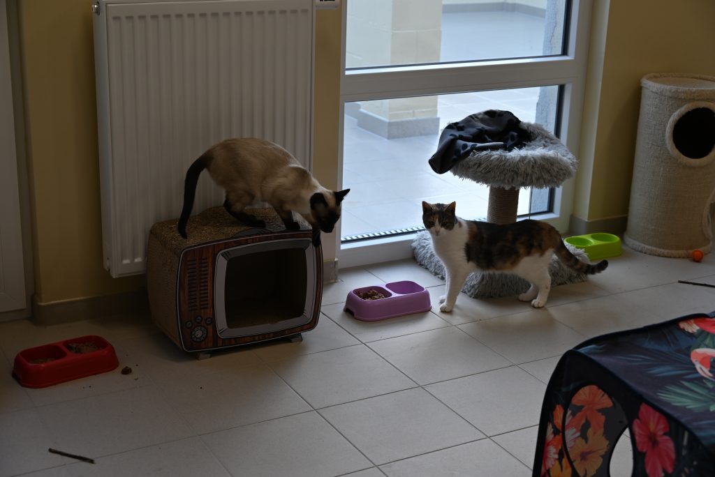 Après leur période de quarantaine, les chats passent en statut « adoptables » dans l’une de nos chatteries rénovées en décembre.