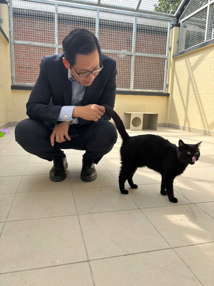 Le Dr. Songkhla CHULAKASIAN, directeur du bureau des affaires agricoles de l’ambassade de Thaïlande en Belgique, dans la chatterie de notre refuge de Bruxelles.