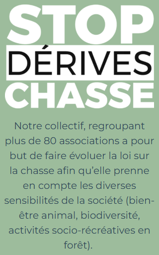 C’est qu’explique le collectif Stop Dérives Chasse, à laquelle notre association fait partie.