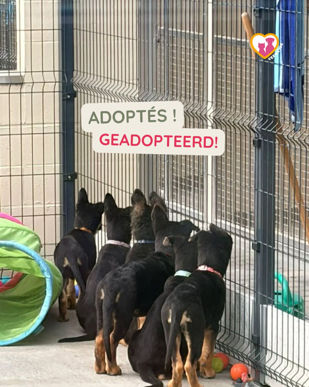 Mais derrière cette belle histoire, deux chiens attendent encore leur chance : leurs parents, Athena et Hadès, âgés de 2 ans, et adoptables séparément.