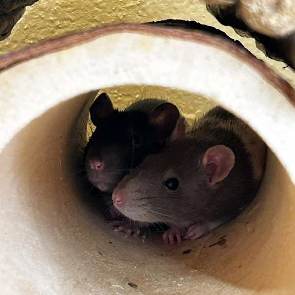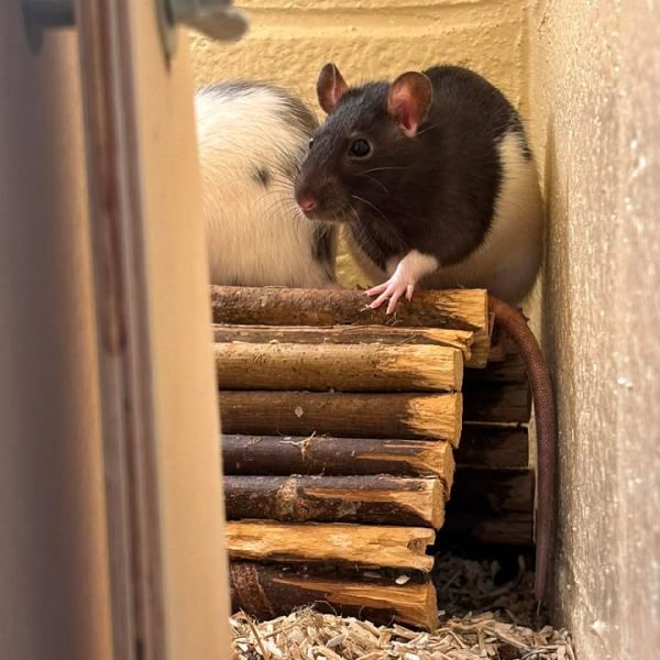 Bonnie et Marcie sont deux jeunes rates de 4 mois. Toutes deux sont encore peureuses, ce qui est tout à fait normal vu leur jeune âge. Elles auront besoin de temps, de douceur et de patience pour prendre confiance en l’humain.