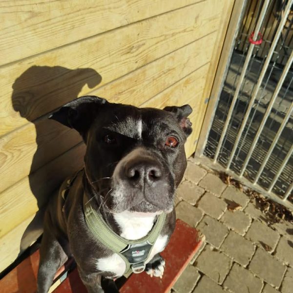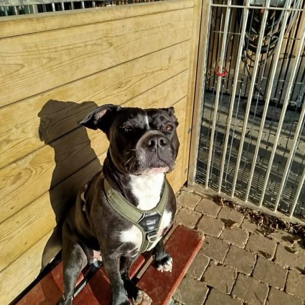 Kira, 5 ans, est une chienne adorable et très attachante avec l’humain. Elle recherche le contact humain et les câlins. En promenade, elle se comporte bien, et elle est capable de croiser des chiens sans les cibler ou sans se figer. Elle porte aussi la muselière sans souci.