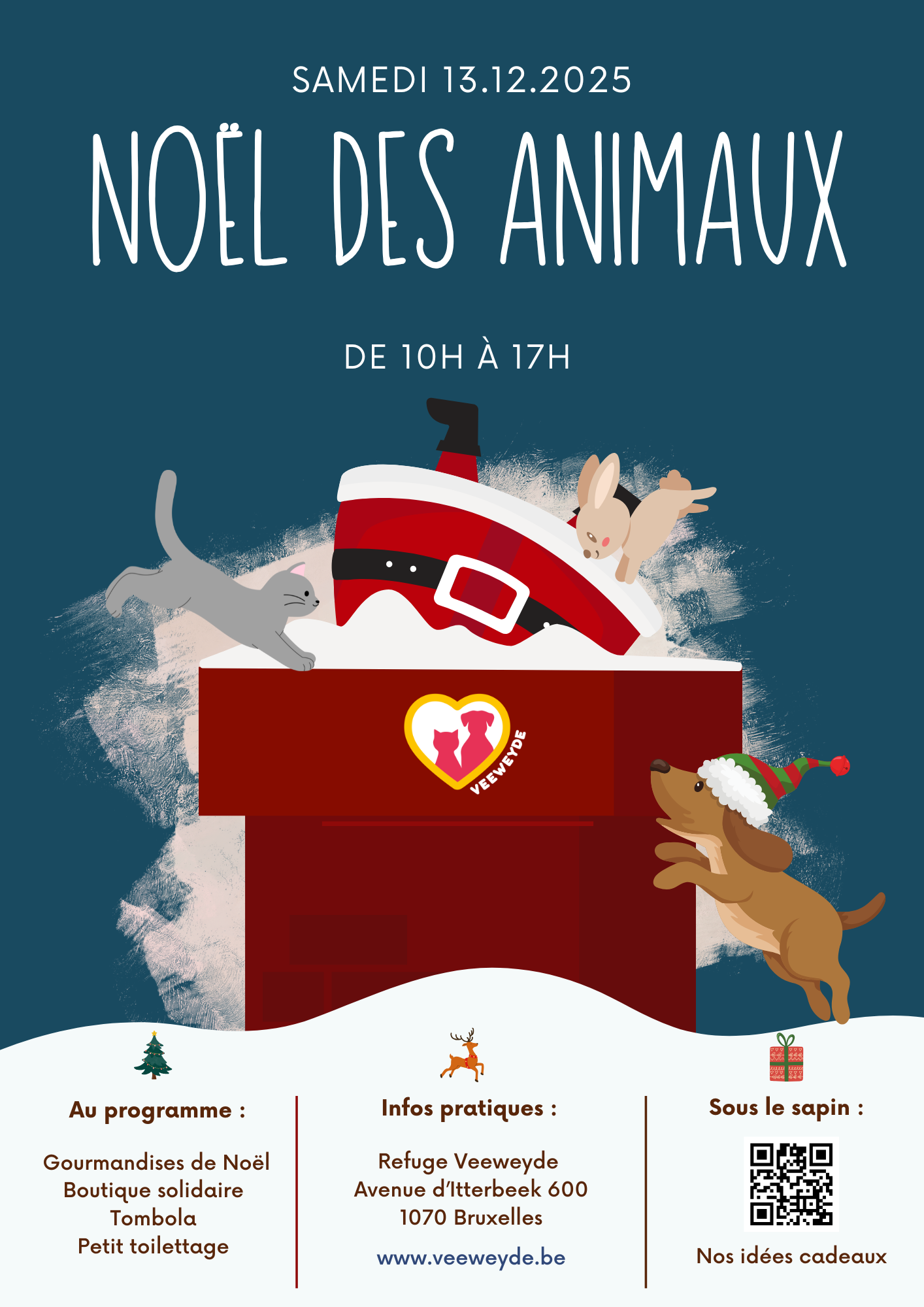 Information importante : afin de préparer au mieux le Noël des Animaux, notre refuge de Bruxelles sera exceptionnellement fermé au public ce vendredi 12 décembre. Nos équipes et bénévoles seront mobilisés pour installer, décorer, organiser les stands, préparer la brocante solidaire, la tombola, préparer les crêpes, le vin chaud et bichonner nos animaux, bref, tout mettre en place pour vous accue