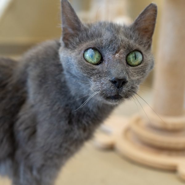 Dora is an adorable Chartreux cat who will soon be 17 years old. She is a very sweet little old lady, constantly seeking attention and human company. Being almost blind, she needs a reassuring and stable environment. She meows a lot, probably due to her advanced age and her need for reassurance.