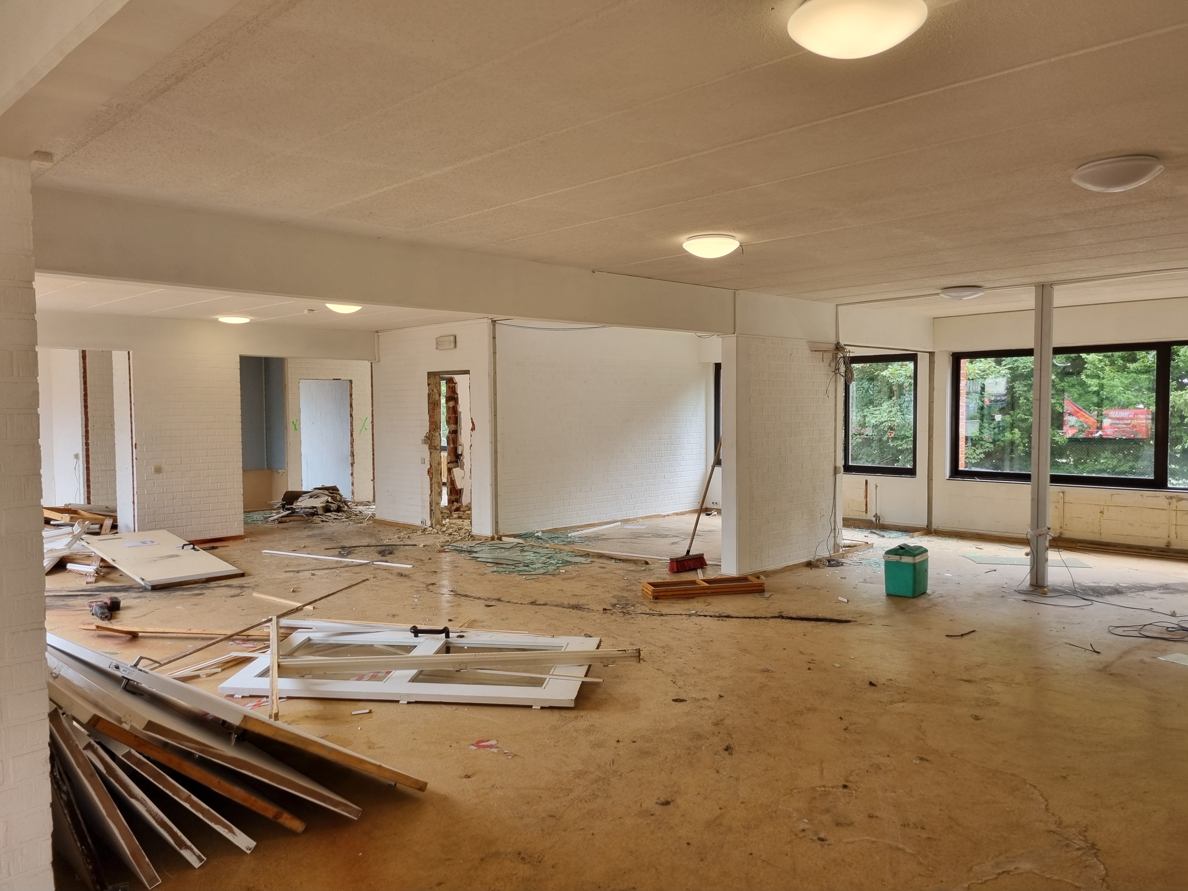 We vertelden je al dat we zouden verhuizen, en nu zijn de kranen op onze renovatiewerf in augustus begonnen met de derde fase: de renovatie van onze receptie en administratie, de uitbreiding van onze garage en de bouw van een nieuwe polyvalente zaal op de bovenverdieping. Na een aantal weken te hebben besteed aan het sorteren van de archieven en administratieve documenten, heeft ons team eindelijk bezit genomen v