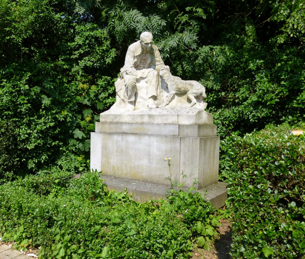 Ons asiel verwelkomt opnieuw een iconisch figuur uit zijn geschiedenis: het standbeeld van Jules Ruhl, oprichter van onze dierenbeschermingsorganisatie, heeft zijn plaats in onze buitenruimte teruggevonden.