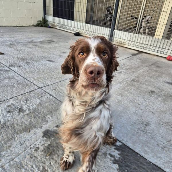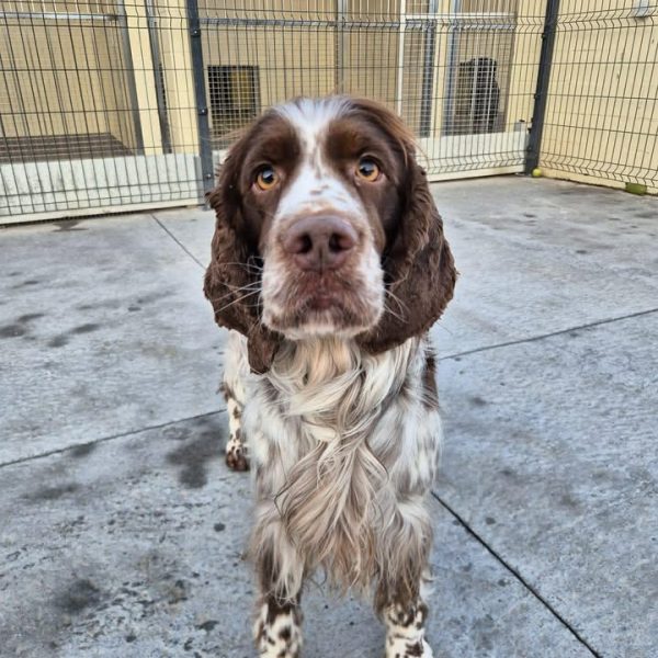 Milarose is een springer spaniel van 3,5 jaar oud, die samen met een andere teef van hetzelfde ras, Louanna, in het asiel is opgenomen. Beiden zijn de afgelopen 12 maanden verwaarloosd als gevolg van gezondheidsproblemen van hun vorige eigenaar: weinig uitlaten, weinig stimulatie en onvoldoende verzorging. Milarose is een nieuwsgierige, zeer energieke hond, die gemakkelijk alle kanten op gaat omdat ze geen kader en houvast heeft gehad. Ze heeft adoptanten nodig die bereid zijn haar fysiek en mentaal uit te dagen, en tegelijkertijd te werken aan haar kader en structuur. Milarose zal alles opnieuw moeten leren: het beheersen van haar emoties en de regels van het leven. Maar ze zoekt contact en is erg lief. We hebben haar in het asiel verzorgd en ze liet zich geduldig behandelen. We zoeken voor haar adoptanten die beschikbaar, actief en consequent zijn, die haar met geduld en volharding kunnen begeleiden, en die geen kinderen in huis hebben. Houd ook rekening met de kosten voor de verzorging: haar vacht moet regelmatig worden onderhouden.