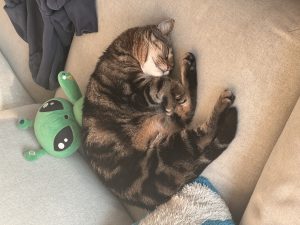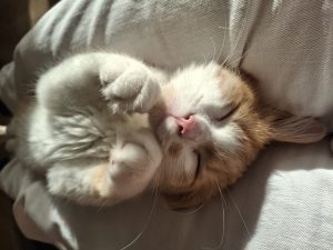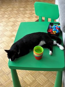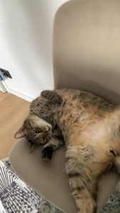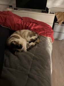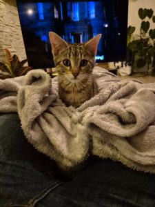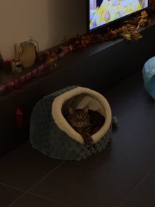 Ses passe-temps favoris : jouer, dormir et faire des câlins! Un vrai bonheur à la maison, surtout en cette période de confinement. Et il adore qu’on le prenne en photo! Un vrai poseur. La petite particularité de Pépite : il a quelques cachettes où il s’amuse à cacher nos chargeurs, nos ceintures et nos chaussettes. Heureusement, on a vite découvert ses planques.