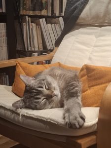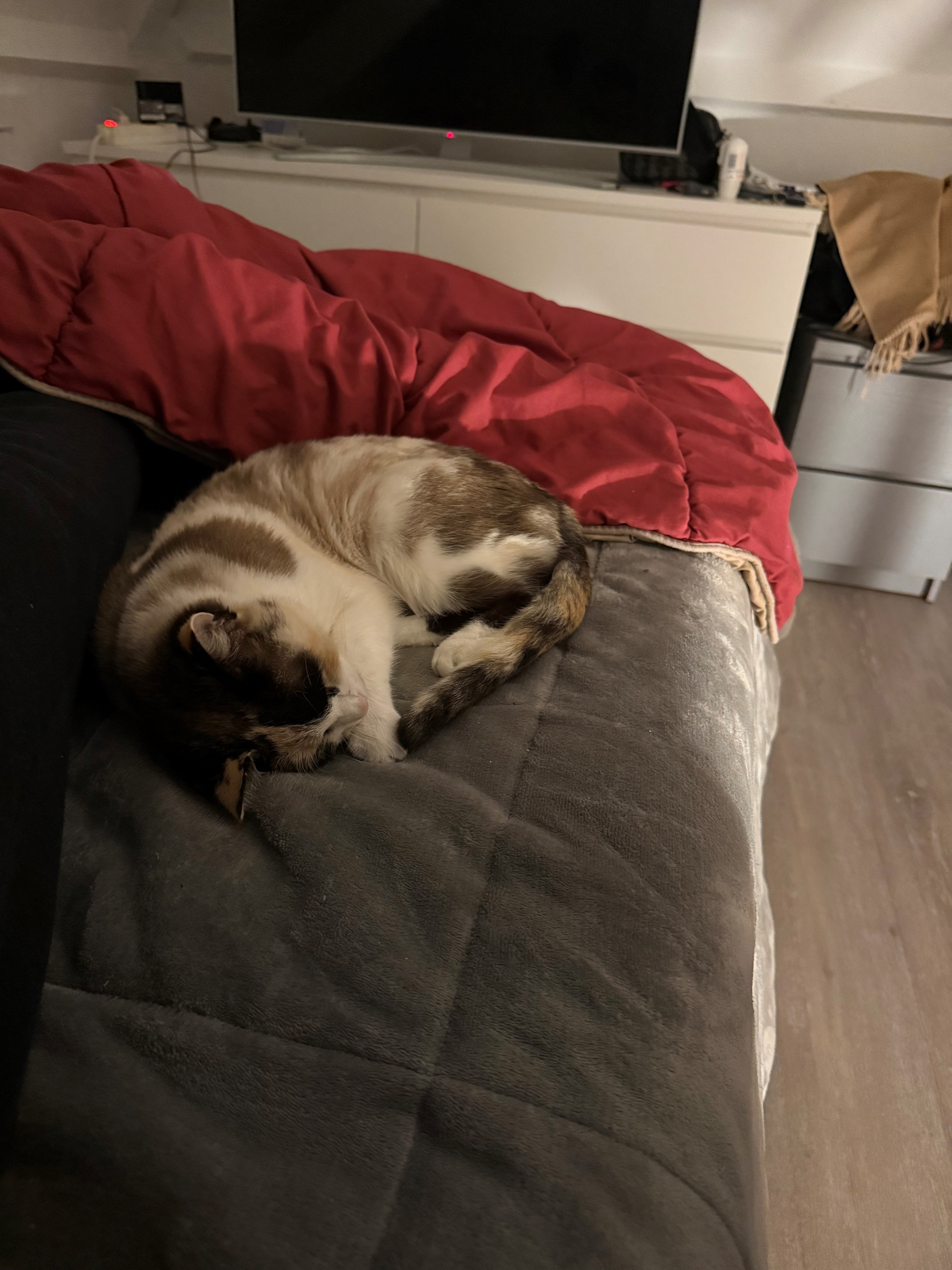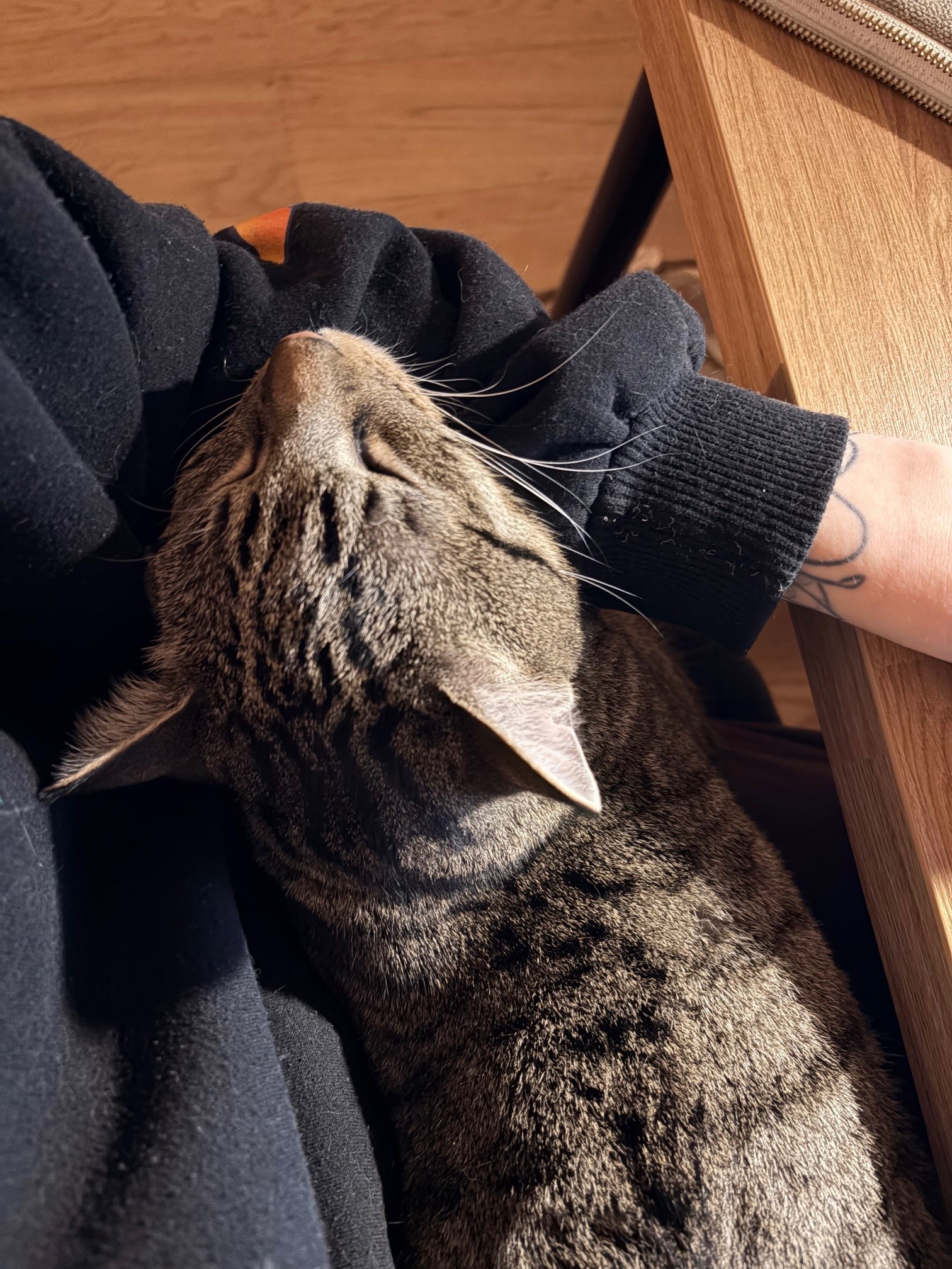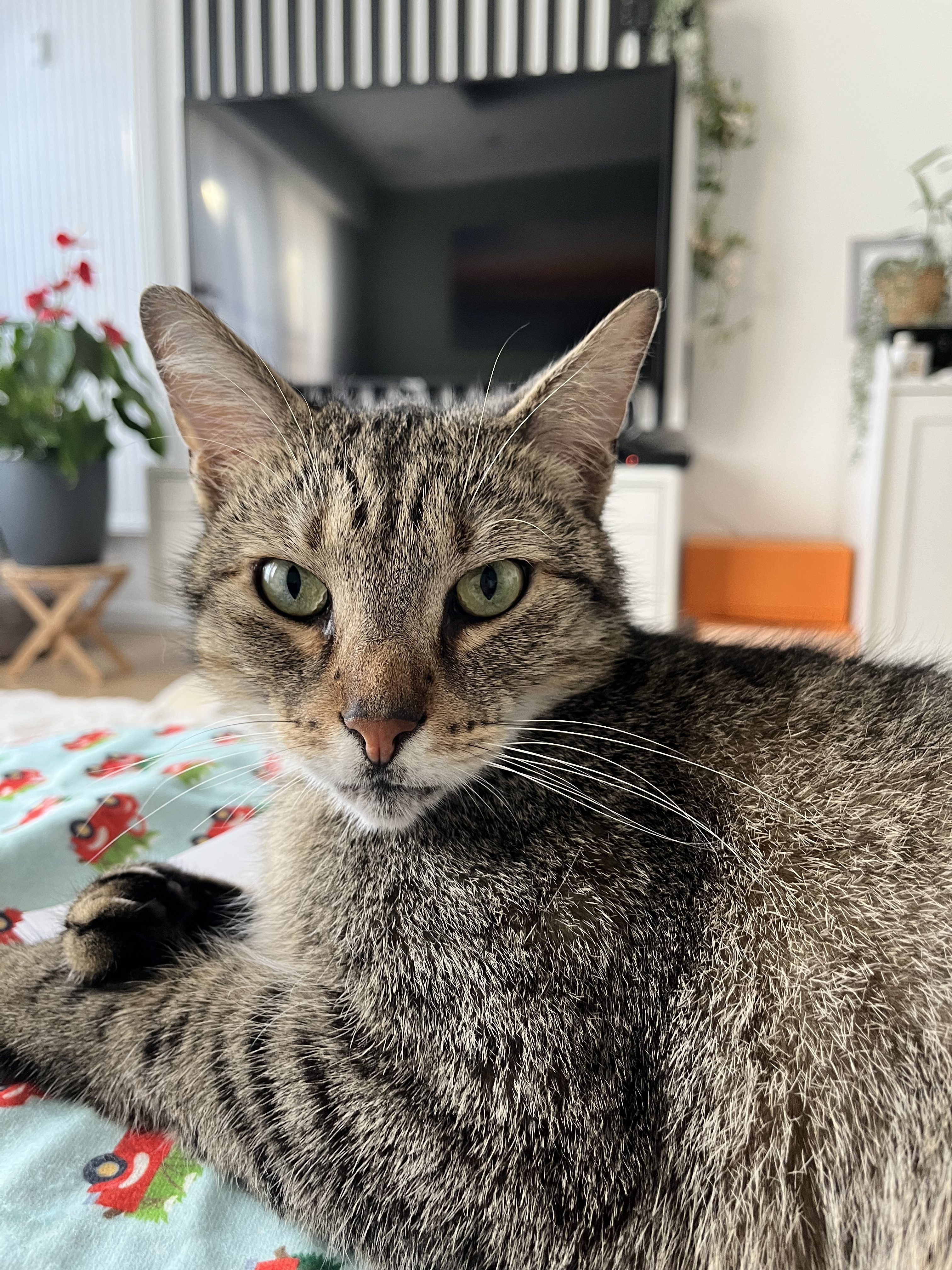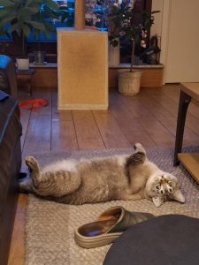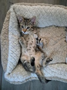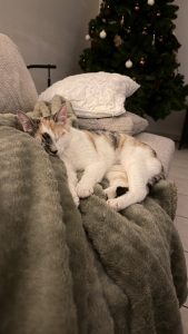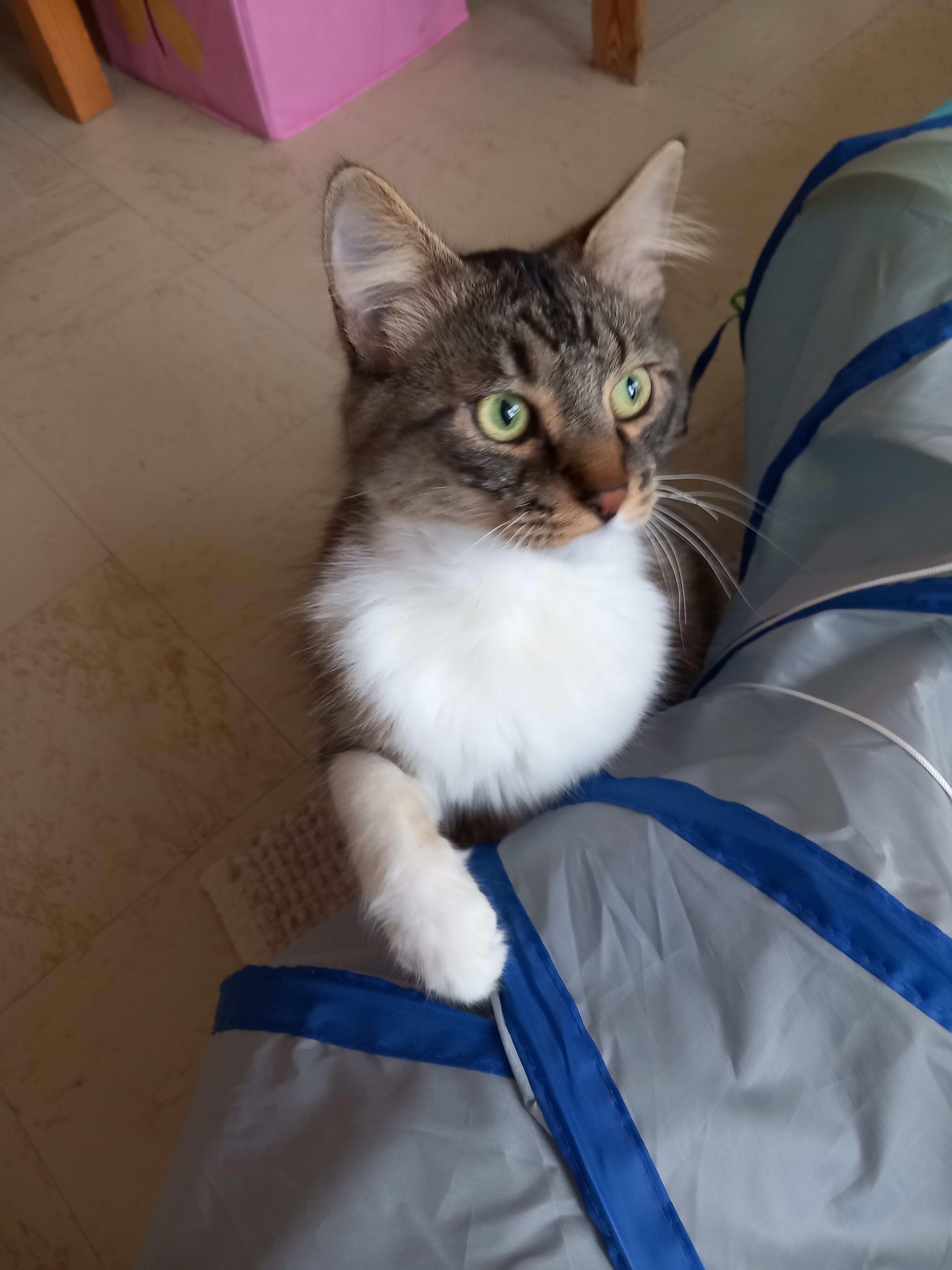 Aujourd’hui, elle ne se cache presque plus. Elle sort, elle explore la maison, elle mange, boit et va aux toilettes sans problème. Elle est devenue très câline, très joueuse, exactement ce que j’espérais. Elle reste encore un peu craintive et peureuse par moments, mais honnêtement ça n’a plus rien à voir avec le début.