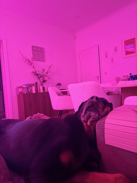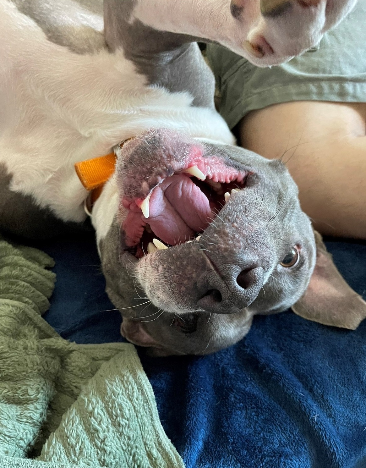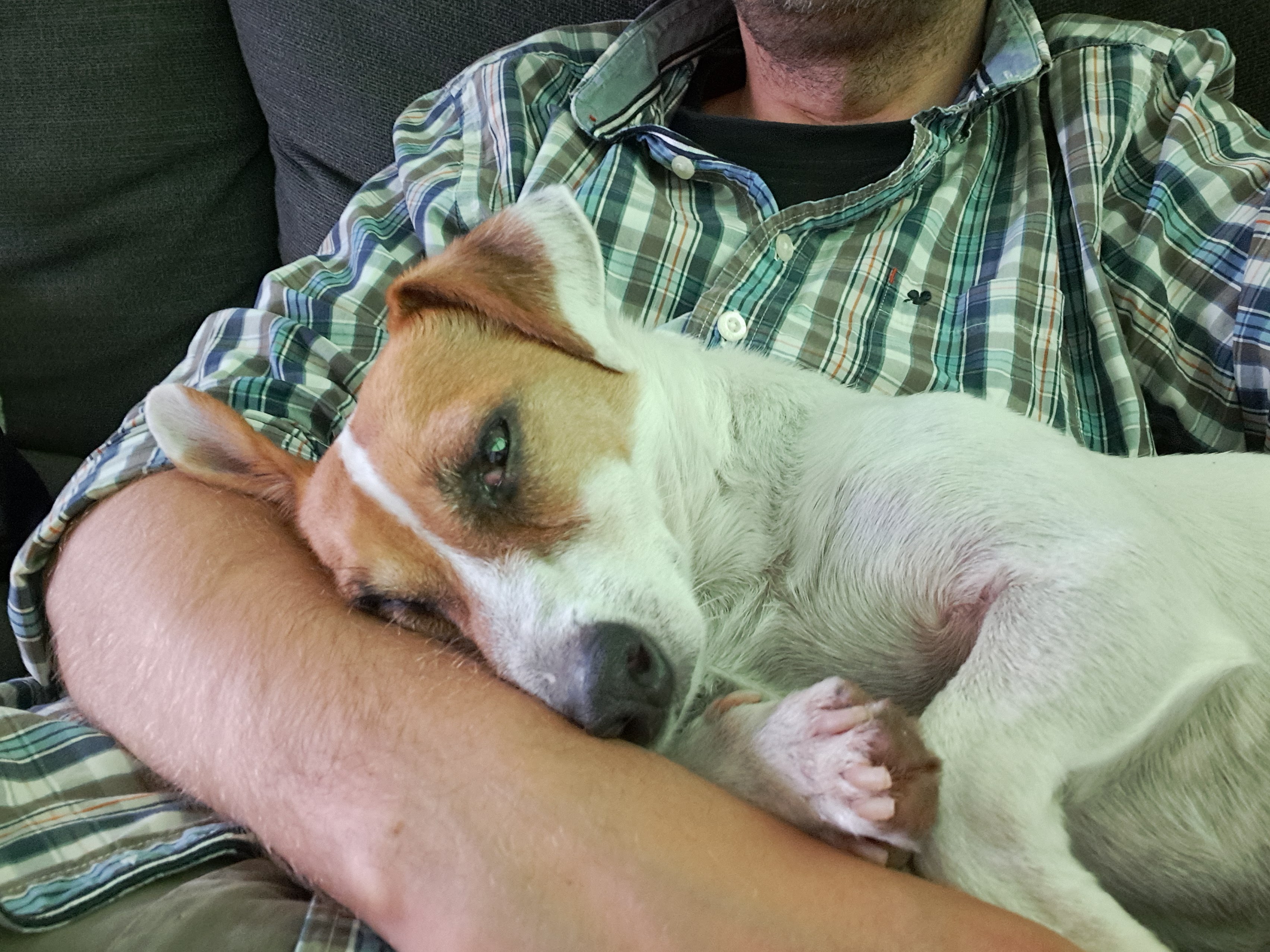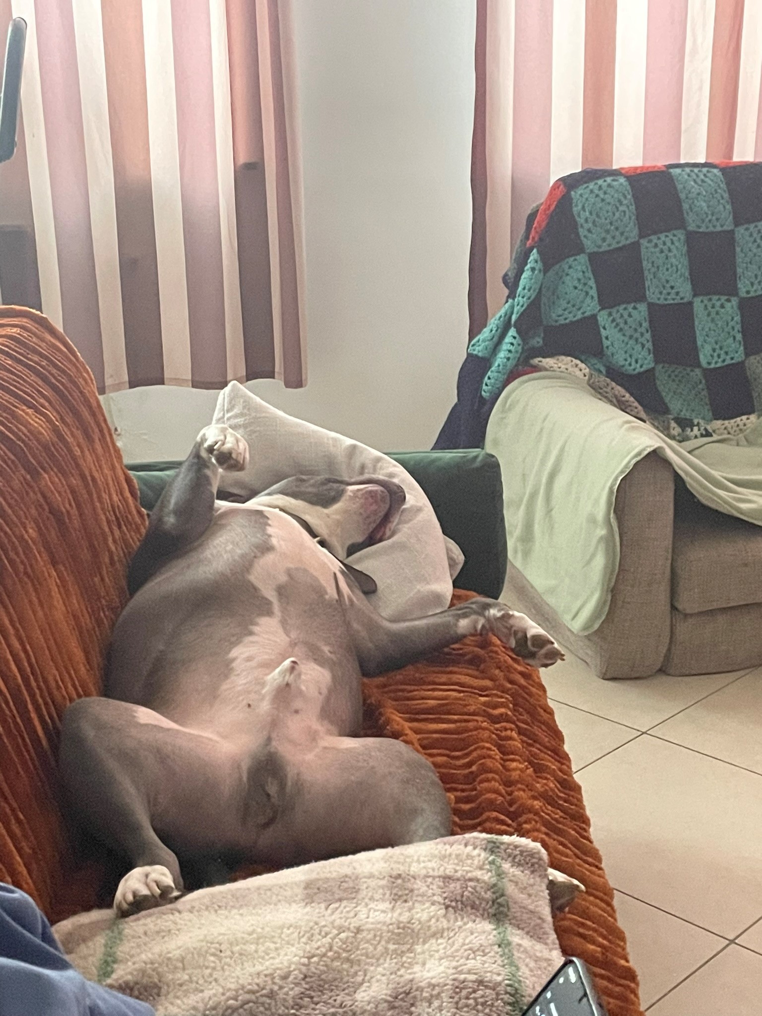 Nous n’avons jamais connu un chien aussi flemmard que luiii, il se lève à midi et passe son temps à dormir et à demander des câlins.