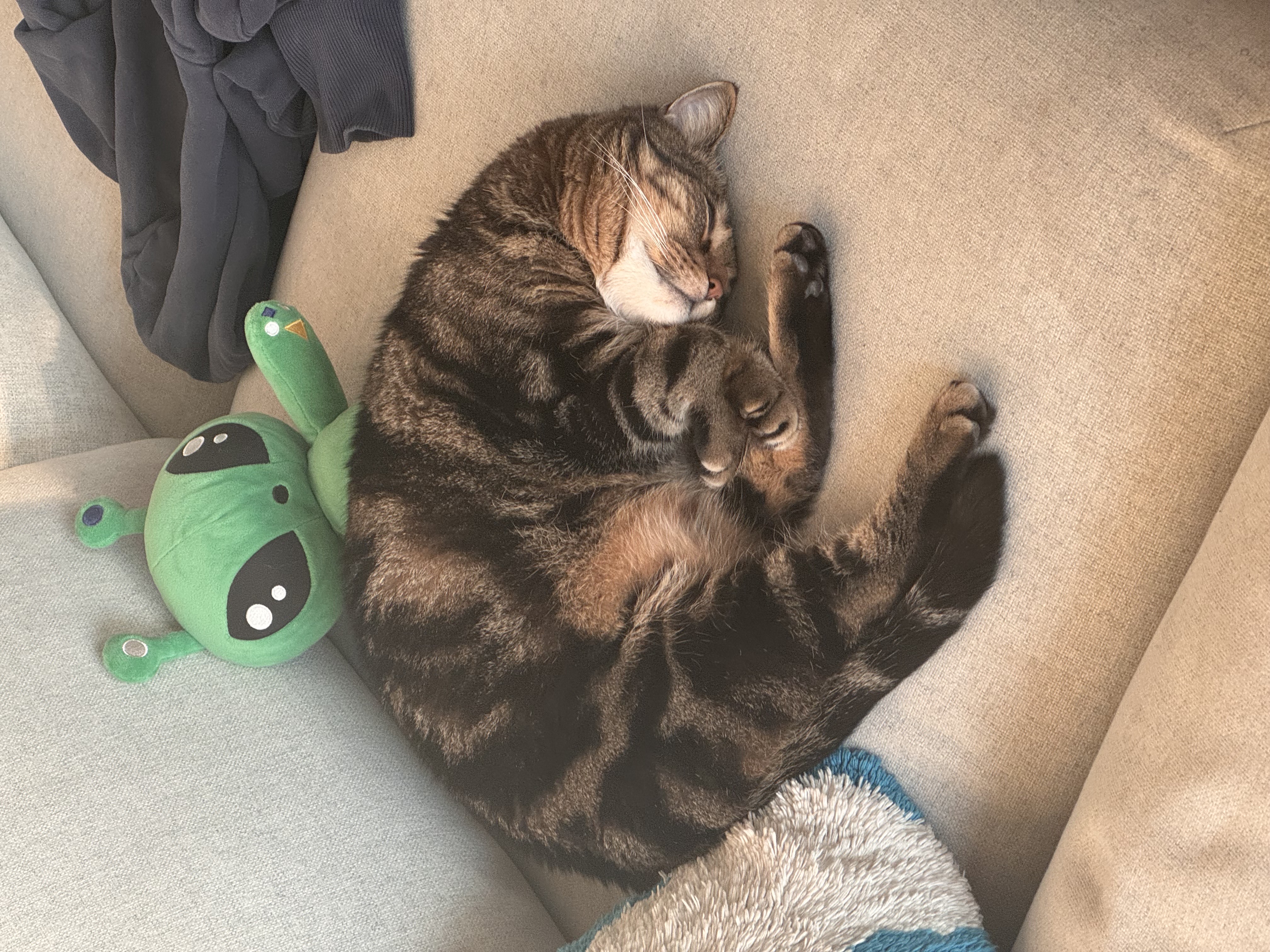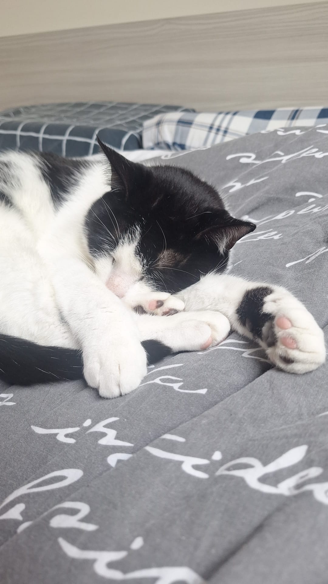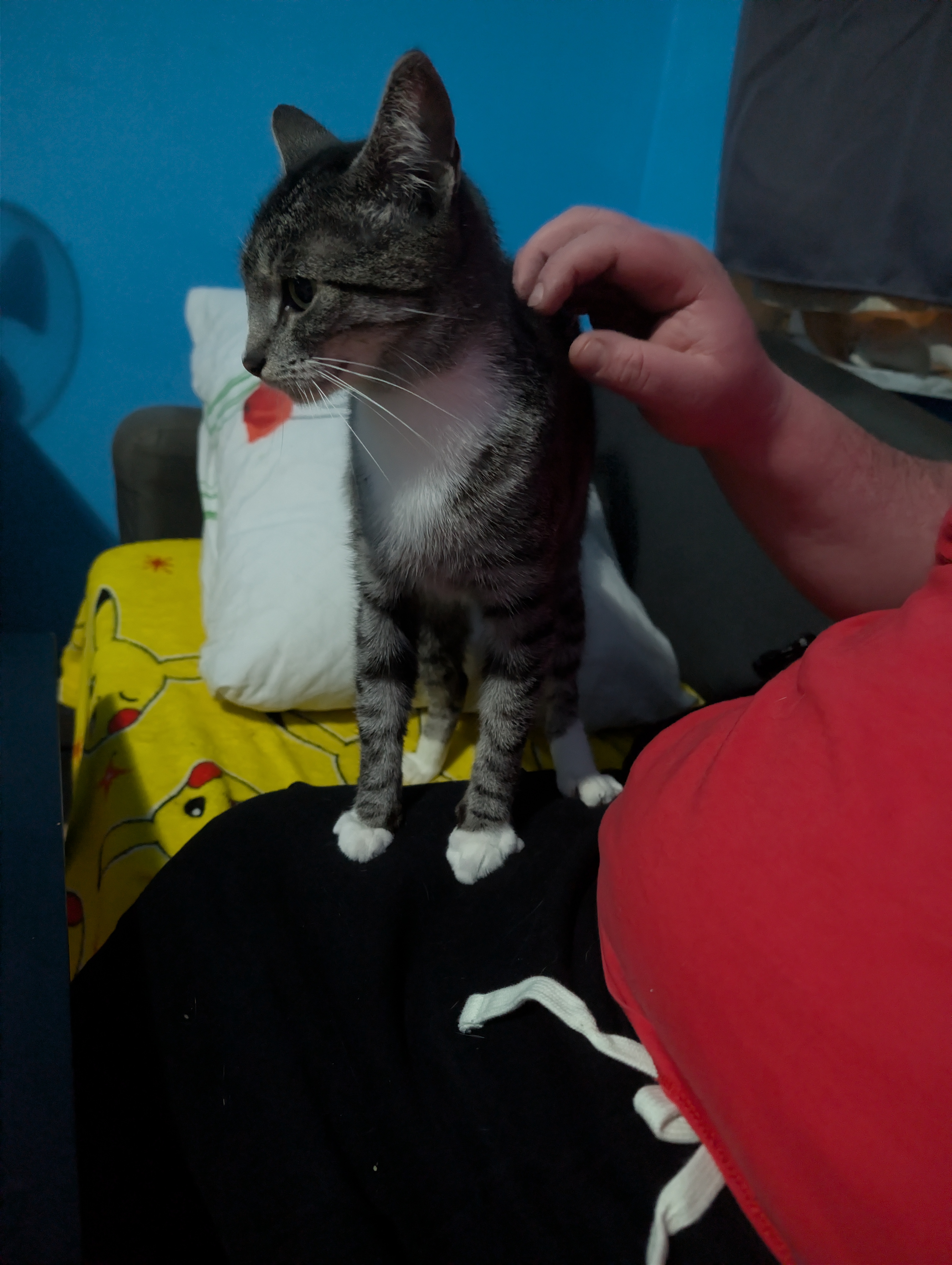 Dès le premier jour il venait sur nous dans le canapé et nous faisait des « massages » en ronronnant, on étaient étonnés et très heureux qu’il se sente bien si vite.1 mois plus tard, rien à changé, à part qu’il montre un peu plus son caractère. Il est gourmand et adorerait pouvoir gouter un bout de cake mais malheureusement il ne peut pas. Il commence à jouer de plus en plus pour notre plus grand bonheur. On voit clairement qu’il se sent bien à la maison et on très content qu’il soit avec nous.