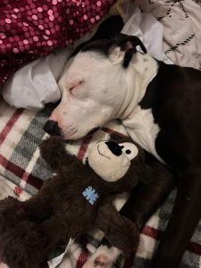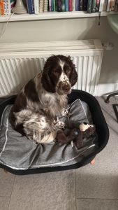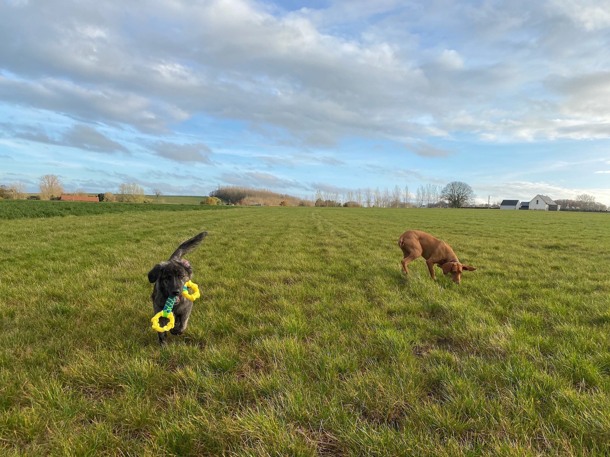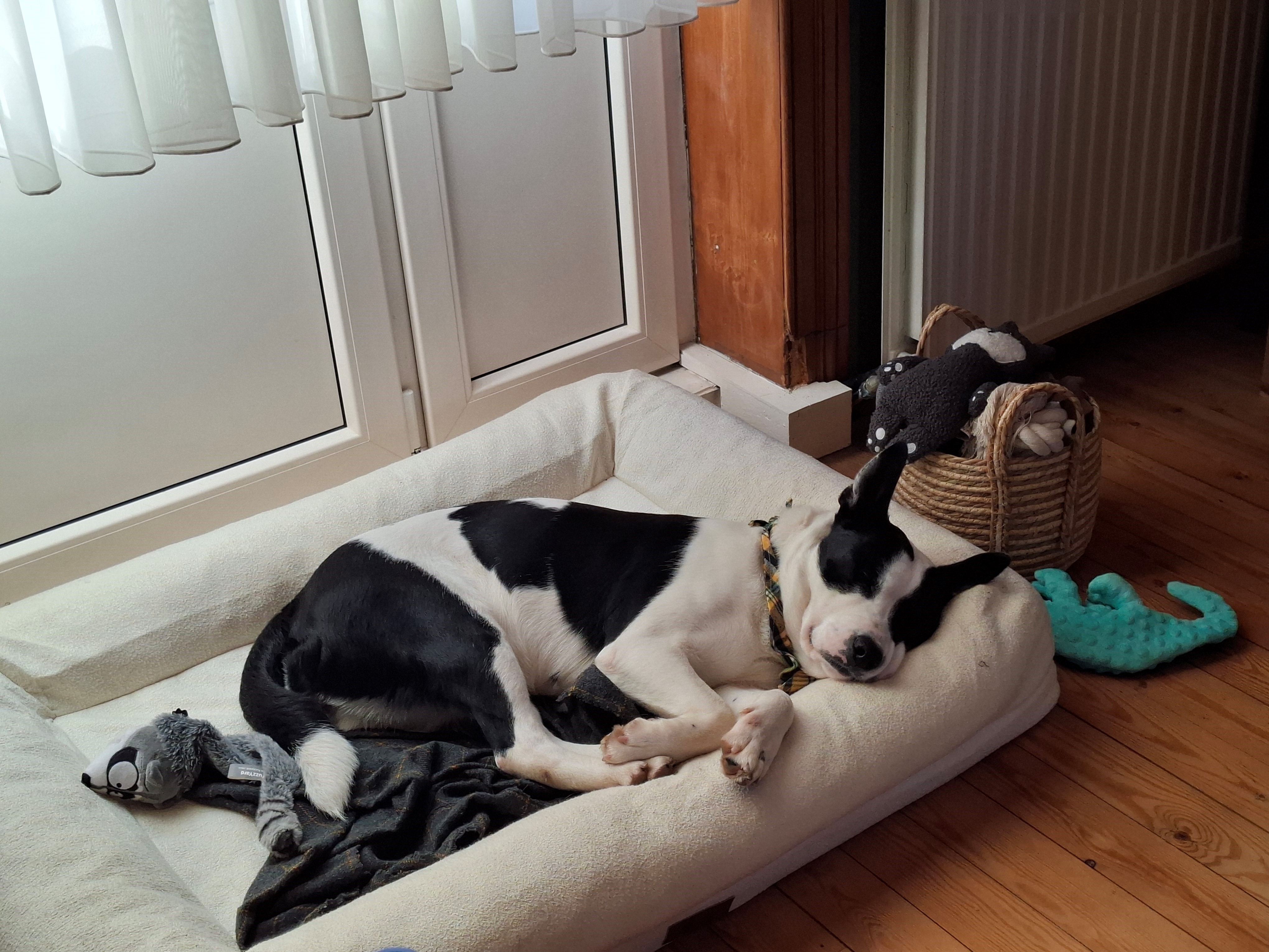 Voici des nouvelles de Jade ! Deux semaines passée avec nous et c’est déjà un pur bonheur de l’avoir. C’est une vraie boule d’énergie à l’extérieur et une peluche en intérieur (elle s’est carrément appropriée le canapé). Et elle est très attachée à son nouveau doudou qui est devenu son jouet préféré.
