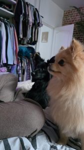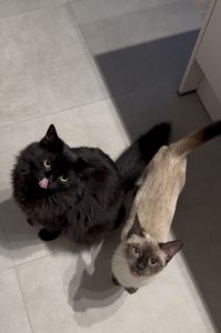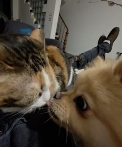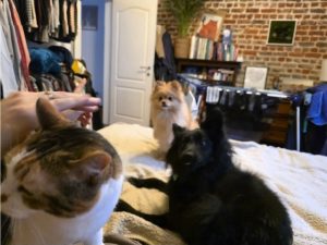 Je suis désolée que cela ait pris autant de temps, mais voici quelques photos de Coraline (anciennement Kai) avec ses nouvelles sœurs ! Tout se passe très bien entre elles et Coraline s’est bien installée. Elle est très affectueuse, adorable et un peu têtue (elle va devenir la patronne de la maison). Elle nous apporte énormément de bonheur, merci de nous l’avoir confiée!