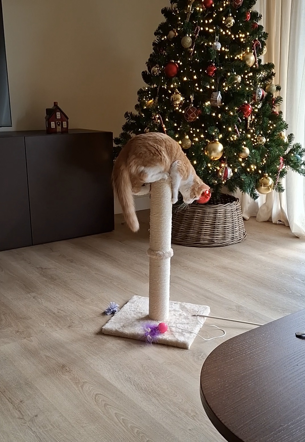 Mon jeu préféré ? L’épreuve des poteaux, comme dans Koh-Lanta (je vous joins une petite photo). J’ai aussi droit à des séances de câlins à n’en plus finir et à des siestes interminables sur les genoux.