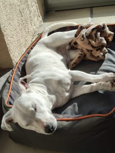 Voici une photo de Sharon, adoptée chez vous le 28 janvier 2018. Elle se porte bien et est toujours autant remplie d’énergie ! Je vous souhaite bon courage, à vous et toute l’équipe, en ces moments difficiles.