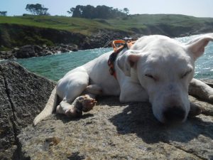 Nous faisons quotidiennement minimum nos 7 kms de marche. Elle répond parfaitement à son nouveau prénom et se promène sans laisse à la plage. Elle revient au sifflet. J’ai l’impression qu’elle partage ma vie depuis longtemps.