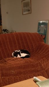 Nous avons adopté Timo ce samedi et après avoir été rebaptisé Mikado, il se porte à merveille ! Je pense qu’il se sent bien chez nous… Il ronronne beaucoup!