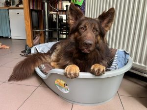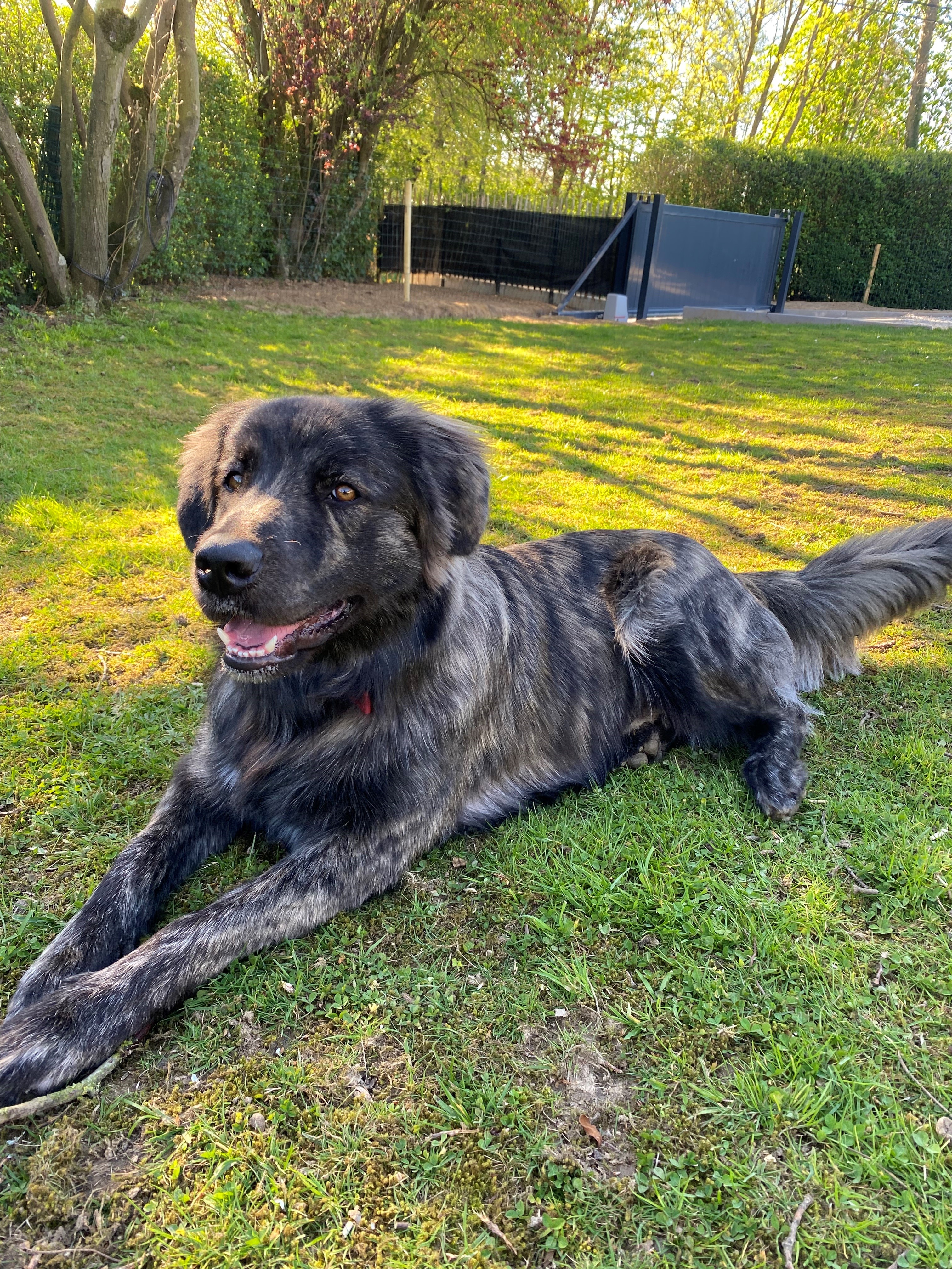 Je tenais juste à vous remercier pour ce magnifique baby qui es chez nous depuis début août. Il a bien repris du poil de la bête. Petite anecdote : le jour où je l’ai adopté, il a justement mordu une dame du personnel. Du coup, je l’ai moi-même pris de sa niche. Quel bon souvenir. Merci.
