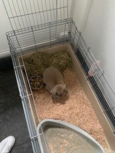 Dès que j’ai que j’ai vu sa petite bouille, j’ai immédiatement craqué. Nous avions téléphoné pour prendre rendez-vous pour l’adoption tant attendue. Lorsque nous sommes arrivés pour chercher Haribo, on nous a indiqué où se trouvait la salle des rongeurs. Il était caché dans sa petite maison et la vétérinaire a pris le temps de tout bien nous expliquer.