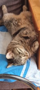 Je ne le regrette pas, mon mari est décédé fin 2019 et elle a contribué pour beaucoup à mon équilibre. Elle est là, je peux lui parler, la toucher, d’autant plus que c’est « un pot de colle ». Elle, de son côté, a trouvé un foyer où elle est aimée, logée, nourrie, soignée. Mon chat précédent remonte à mon adolescence et par la suite, nous avons eu des chiens, ce qui fait que je n’ai pas encore compris toutes les subtilités du caractère de mon chat, c’est encore parfois énigmatique.